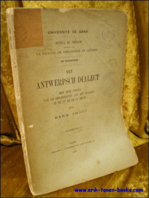 HET ANTWERPSCH DIALECT MET EENE SCHETS VAN DE GESCHIEDENIS VAN DIT DIALECT IN DE 17e EN 18e EEUW, | Libri antichi e moderni | Smout, Herm.
