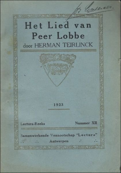 HET LIED VAN PEER LOBBE. | Libri antichi e moderni | Teirlinck, Herman.