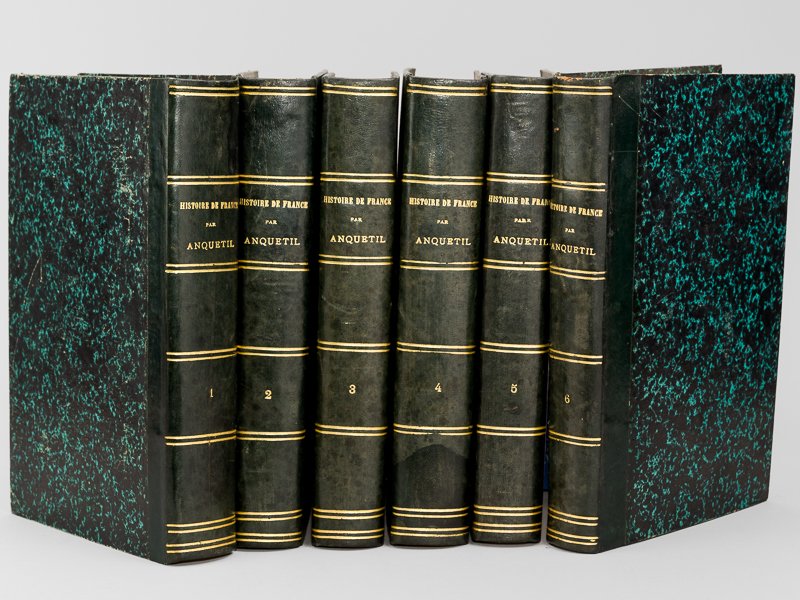 Rappel du titre complet : Histoire de France, depuis les temps les plus reculés jusqu'à la Révolution de 1789 (6 Tomes - Complet). Continuée depuis l'ouverture des Etats Généraux jusqu'à la Fin de l'Empire, d'après Dulaure, depuis la Restauration de 1814 jusqu'au 10 décembre 1848 par Paul Lacroix (Bibliophile Jacob), depuis l'élection du Président de la République jusqu'à la fin de la guerre d'Italie 1860 par M. E. F. archiviste paléographe Bon ensemble de bonne présentation, bien complet des 6 tomes (rouss. parfois fortes, petite mouill. angulaire sur qq. ff., bon état par ailleurs)