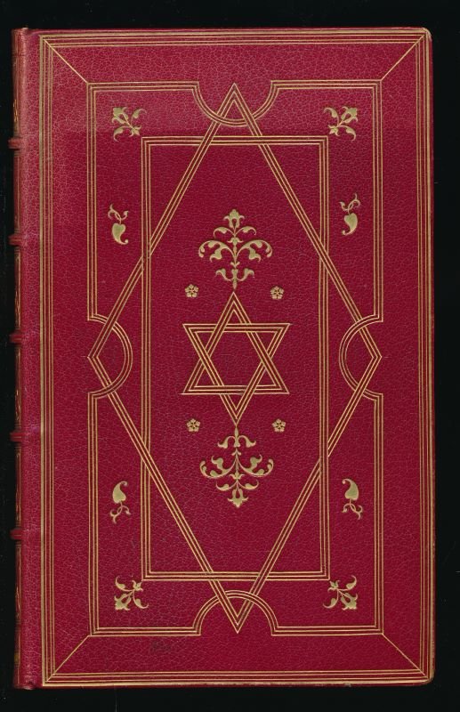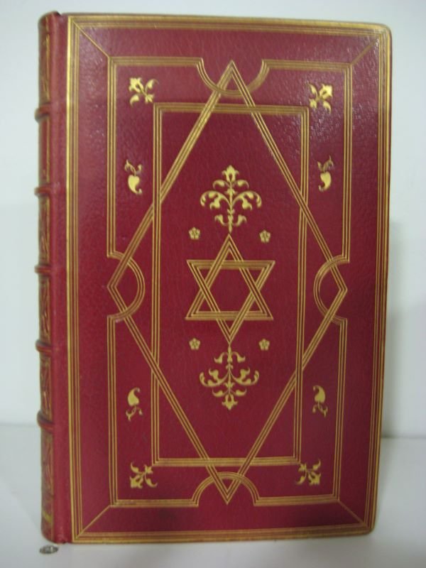 Glady frères 1875 Paris, Librairie du XIXeme siècle Glady frères, 1875. In-8 relié plein maroquin rouge, dos à nerfs très orné de filets, fleurons et entralacs dorés, daté en dos Paris 1875. Multiples filets dorés d'encadrement sur les bras et Etoile de David dorée entourée de fleurons dorés au centre de chaque plats, gardes de papier marbré, roulette dorée intérieure, tête dorée, filets dorés sur les coupes, signet de soie. Reliure signée de J. Prat. xlix + 372 pages. Préface par Alexandre Dumas fils. Edition revue sur les textes originaux accompagnée de variantes et d'une notice par Anatole de Montaiglon. Portrait d'Alexandre Dumas fils gravé à l'eau-forte d'après le buste de Carpeaux par Jules Jacquemart et tiré par ienard. 11 planches sous serpentes dessinées et gravées à l'eau-forte par Léopold Flameng et imprimées par Salmon. Les ornements du texte : fleurons, têtes de chapitres, culs de lampe, lettrines ainsi que le frontispice, ont été dessinés sur bois par Emile Reiber et gravés par Pennemaker. Tiré à petit nombre sur papier Turkey-Mill fabriqué par la Maison Hollingwoth, du Comté de Kent, en Angleterre. On peut juste noter une légère décoloration de la reliure en partie supérieure du premier plat sans grande gravité tant la reliure est belle et bien finement exécutée. Intérieur en parfait état, absolument sans rousseurs. Très bel examplaire.