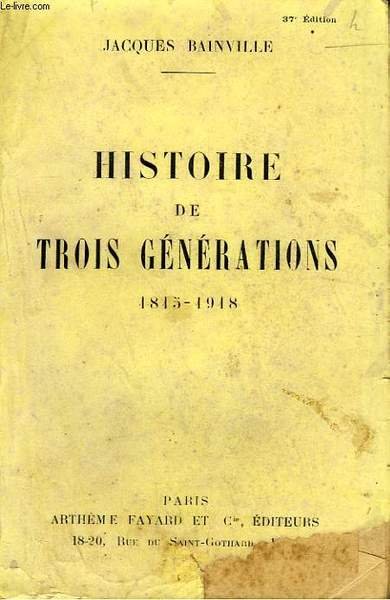 HISTOIRE DE TROIS GENERATIONS. 1815-1918. | Libri antichi e moderni | Bainville Jacques.