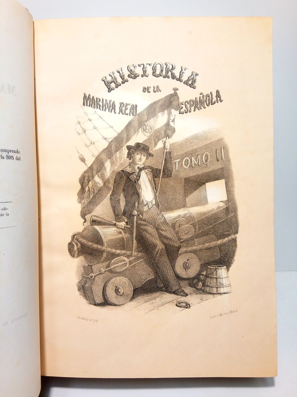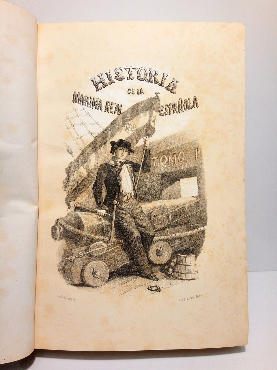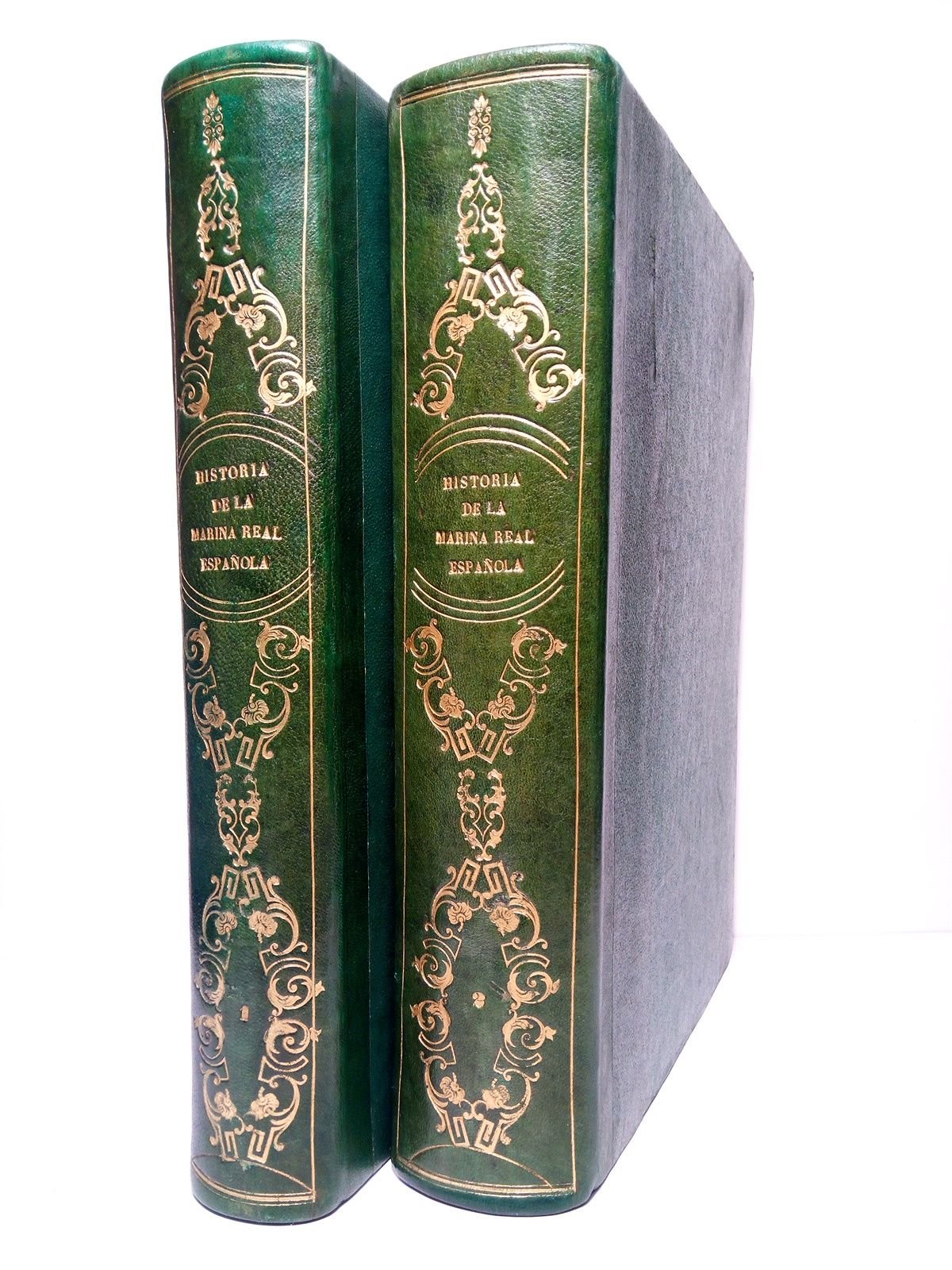[Tomo I. de la 2ª Ed. y Tomo II. de la 1ª Ed.].- Madrid: Imp. de José María Ducazcal (Domingo Carlos Vila y Juan Manini, Editores), 1856, 1854 (respectivamente); 2 VOLS. ([1 h.], 696 p.; [2 h.], 835 p.]: Tomo I. con Frontis litográfico ante la portada, 11 retratos litograficos, 21 láminas litográficas alegóricas y profusión de grabados en madera intercalados en el texto; Tomo II. con Frontis litográfico ante la portada, 36 retratos litográficos, 30 láminas litográficas alegóricas y profusión de grabados en madera intercalados en el texto (los grabados litográficos son la mayoría de Urrabieta, C. Mújica, D. Valdivieso, C. Legrand, J.Vallejo) ; in Folio Mayor (32 x 22,5 cm); Excelente impresión sobre papel de gran calidad; Enc. de la época en Media Piel de lomo liso (sin nervios) cuajado en oro, guardas en papel de aguas marbreado.* La portada del Tomo 1º restaurada de un desgarro que casi no toca texto. Ambos tomos con leves señales de óxido en algunas pocas hojas. La encuadernación con algunas rozaduras en los bordes de las tapas, que han sido restauradas. Dicho esto, que es preceptivo, la obra se encuentra en muy buen estado general. RARO EJEMPLAR. Palau Nº 90491, dice: Es curioso consignar que las pautas de las láminas para ambos tomos solo dan 11 y 36 retratos, pero nada dice del resto de las láminas, cuyo número no coincide ser el mismo en todos los ejemplares, y es de suponer que se añadieron a la obra. [Creemos que nuestro ejemplar está completo de láminas]. MARINA, PIRATAS, CORSARIOS, BUCANEROS