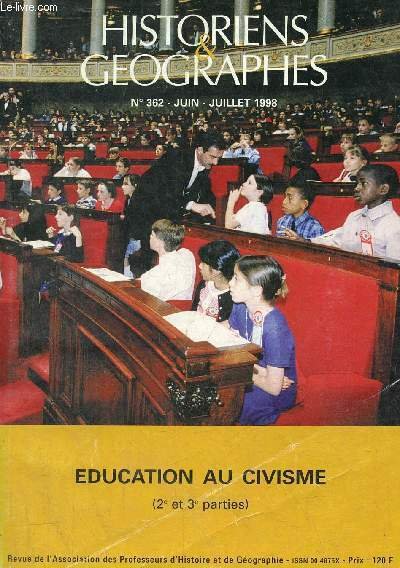 Historiens & géographes n°362 juin-juillet 1998 - Education au civisme 2e et 3e parties.