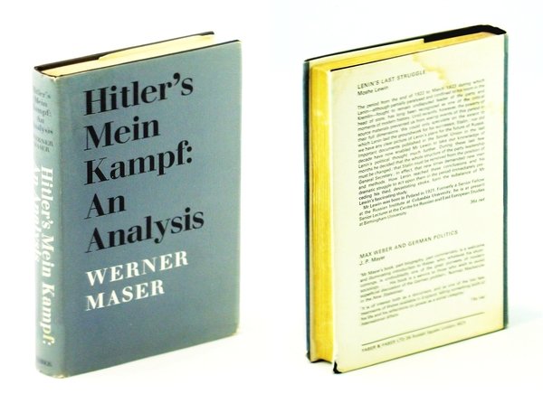 272 pages. Index. Extensive bibliography. Footnotes. First published in German in 1966. "Before 1945, Mein Kampf was one of the most widely distributed and translated books in the world. After the war the sale of the book was forbidden in Germany; and all important documents relating to the history of the Nazi Party were in Allied custody. Dr. Maser is the first German historian who has been allowed access to these documents. After much detailed and painstaking research he has now produced this illuminating analysis of one of the most horrifying - and one of the most influential - books ever written. Essential reading for any student of Nazi Germany; and further proof, if proof be needed, of the appalling blindness of Western statesmen in failing to take seriously and literally the actual text of Hitler's textbook for conquest, destruction and mass-murder." - dust jacket. Former library copy with usual markings and above-average wear. Some pencil markings to contents. Spine leaning. Binding intact. Dust jacket now protected in archival-grade Brodart. A sound reference copy. Madden p.113, Kehr & Langmaid 734, Phillips p.179. Book