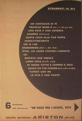 Ho nostalgia di te + Travelin band + Una rosa e una candela + Chimene + Cento colpi alla tua porta + indiscutibilmente + Per 70 lire + Rabdabdab + Pitea + Sai + Bastava una parola + Limbo rock ecc. | Libri antichi e moderni |