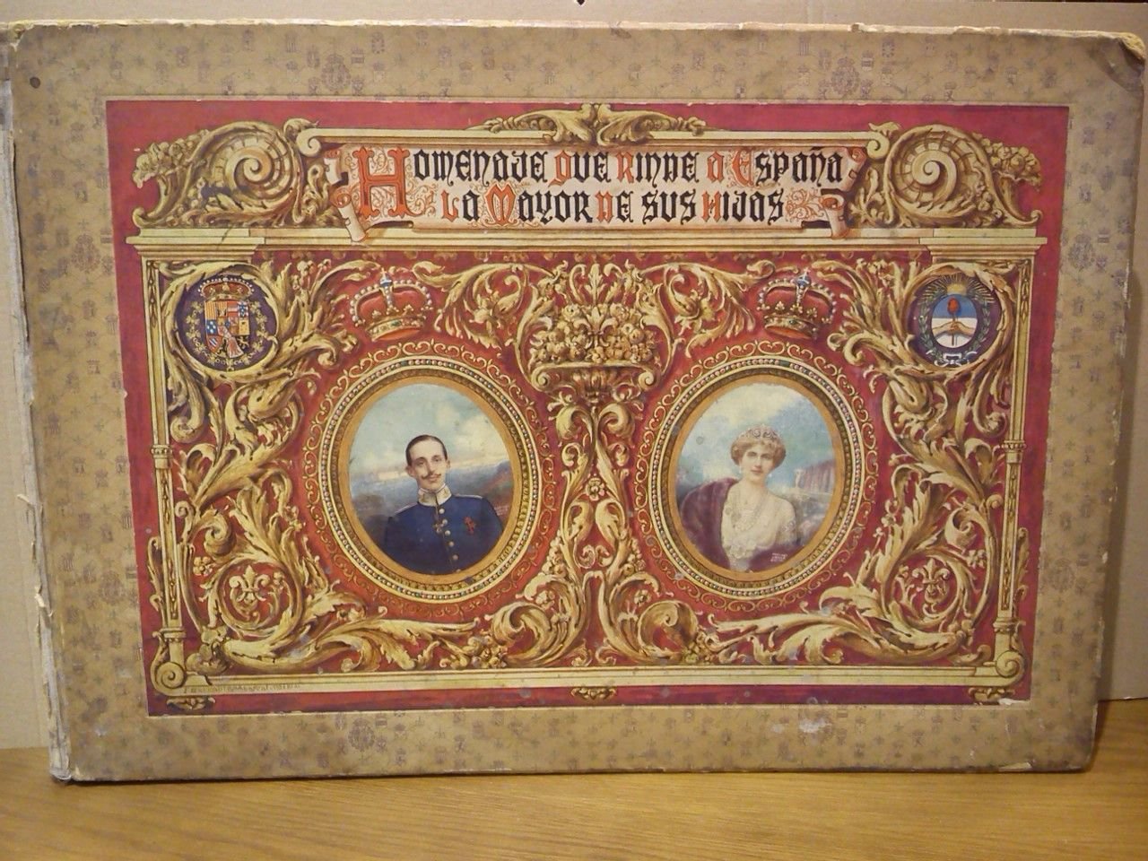 Buenos Aires, 1921.- 187 p., [2 h.]: profusión de ilustraciones y gran parte del texto orlado; Gran Folio apaisado(34 x 48,5 cm); Cartoné Ed. y cubierta anterior ilustrada con la efigie de los reyes de España Alfonso XIII y Victoria Eugenia.* Cubiertas rozadas y fatigadas debido al tamaño y peso de la obra. La lomera muy desgastada, interior muy bien. HISTORIA, POLÍTICA Y DERECHO POLÍTICO-INTERNACIONAL AMERICANOS DESDE LA INDEPENDENCIA