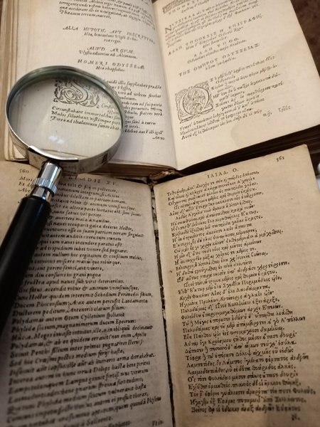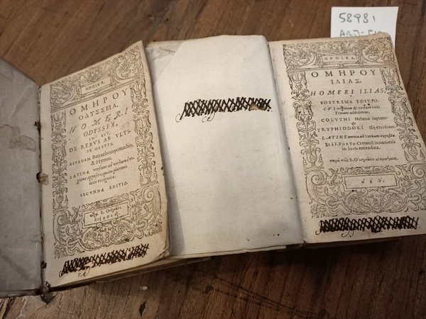 Homeri Ilias postrema editio cui originem & exitum belli Troiani addidimus, Coluthi Helenaeraptum & Tryphiodori Ilij excidium latine omnia ad verbum exposita et à F. Porto cretensi innumeris in locis emendata - Homeri Odyssea id est de rebus ab Ulysse gestis eiusdem Batrachomyomachia & Hymni latina versione ad verbum è regione apposita, quam plurimis locis recognita. Secunda editio | Libri antichi e moderni | Homerus - Colluthus Thebanus - Tryphiodorus