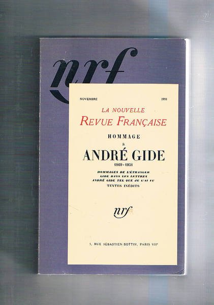 Hommage a André Gide 1869-1951. Ristampa del di Novembre 1951 della rivista La Nouvelle Revue Française.
