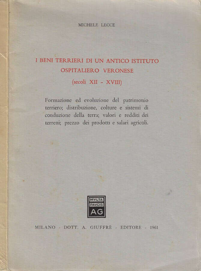 I beni terrieri di un antico istituto ospedaliero veronese (secoliXII-XVIII) | Libri antichi e moderni | Michele Lecce