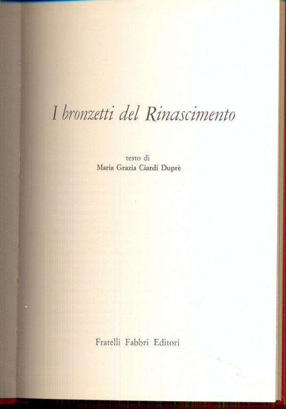 I bronzetti del Rinascimento | Libri antichi e moderni | Ciardi Dupre'', Maria Grazia