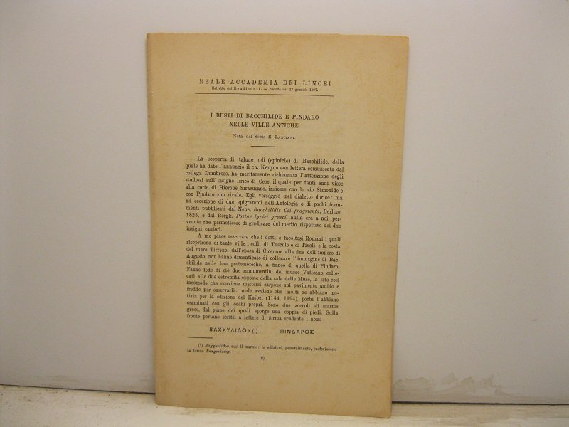 I busti di Bacchilide e Pindaro nelle ville antiche | Libri antichi e moderni | Lanciani R.