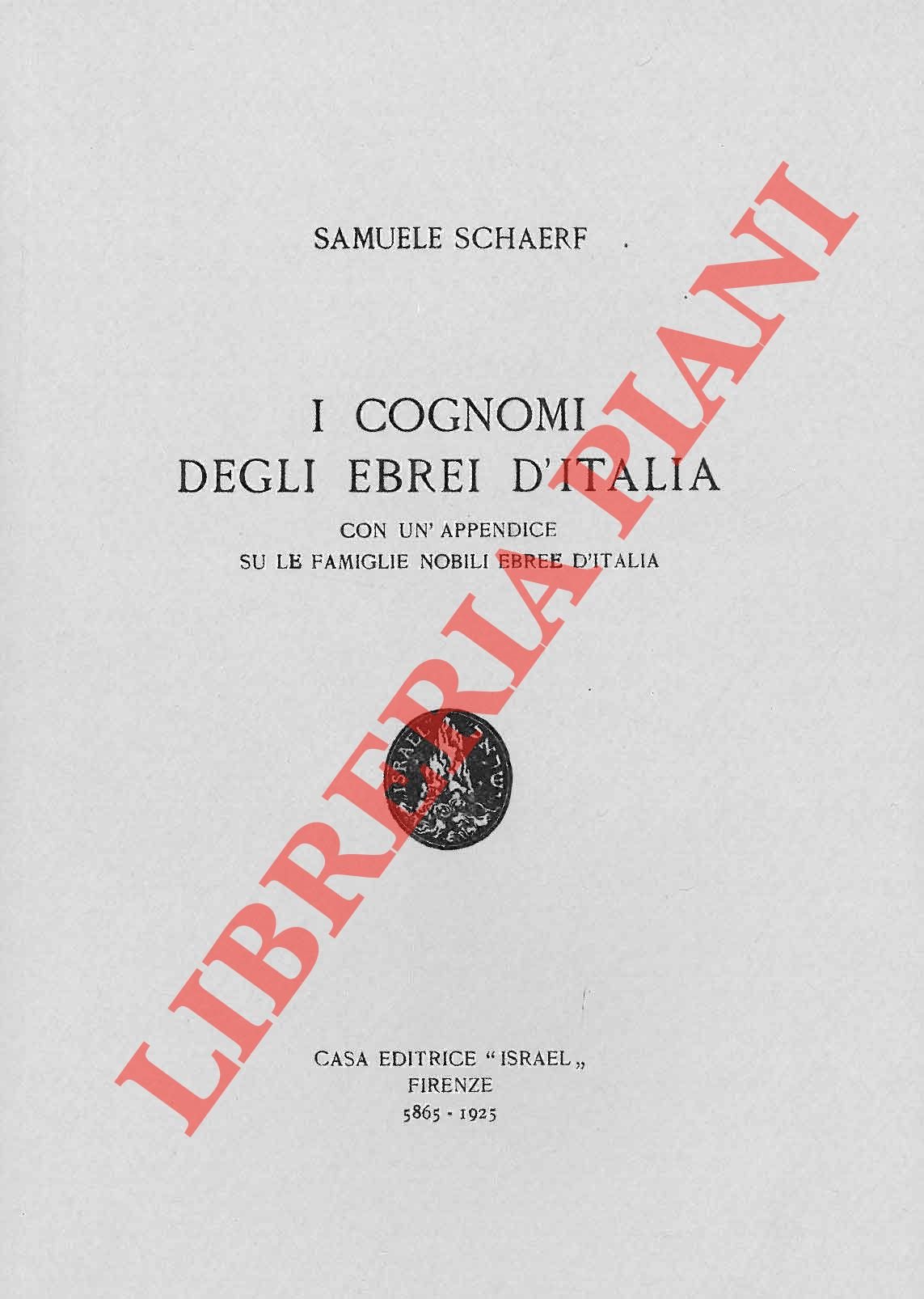 I cognomi degli ebrei in Italia. Con un’appendice su le famiglie nobili ebree in Italia. | Libri antichi e moderni | Schaerf Samuele