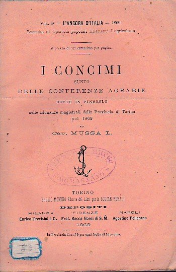 I concimi. Sunto delle conferenze agrarie dette in Pinerolo nelle adunanze magistrali della Provincia di Torino pel 1869 | Libri antichi e moderni | Mussa L.
