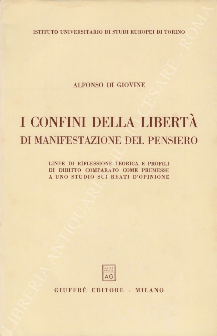 I confini della libertà di manifestazione del pensiero. Linee di riflessione teorica e profili di diritto comparato come premesse a uno studio sui reati d'opinione | Libri antichi e moderni | Di Giovine Alfonso