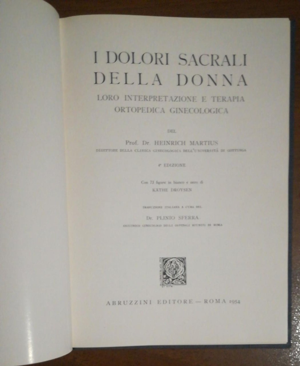 I DOLORI SACRALI DELLA DONNA loro interpretazione e terapia ortopedica ginecologica | Libri antichi e moderni | MARTIUS -- SFERRA, ,MARTIUS -- SFERRA