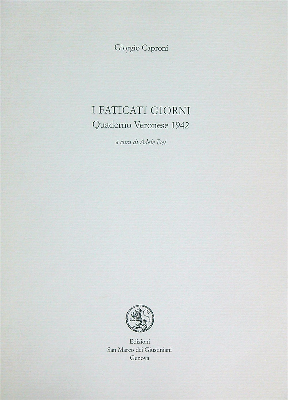 I faticati giorni Quaderno veronese 1942 | Libri antichi e moderni | Caproni, Giorgio - Dei, Adele