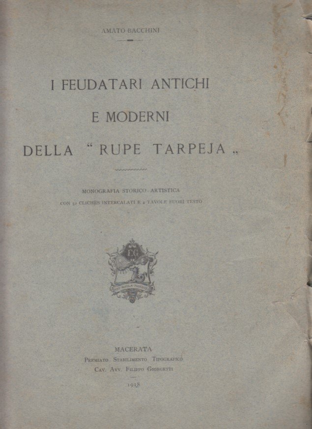 I feudatari antichi e moderni della Rupe Tarpea. Monografia storico artistica | Libri antichi e moderni | Bacchini Amato