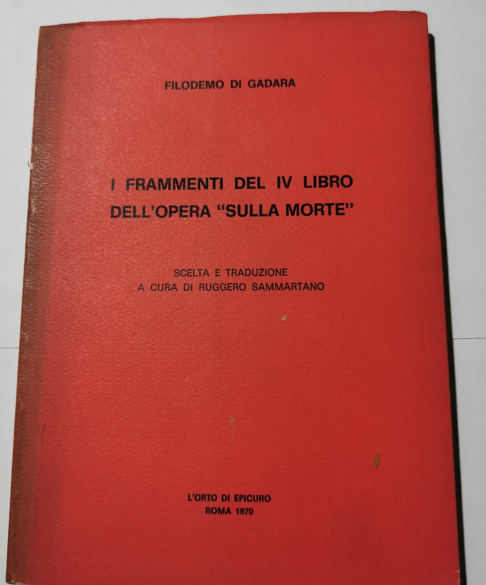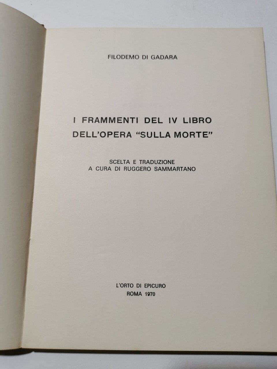I frammenti del IV libro dell'opera 'Sulla Morte' | Libri antichi e moderni | Di Gadara, Filomeno