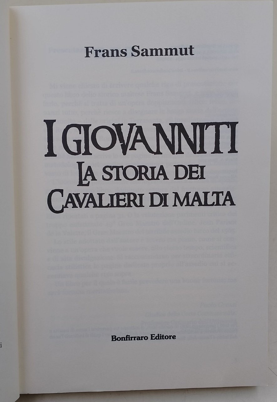 I Giovanniti - la storia dei Cavalieri di Malta | Libri antichi e moderni | Sammut, Frans