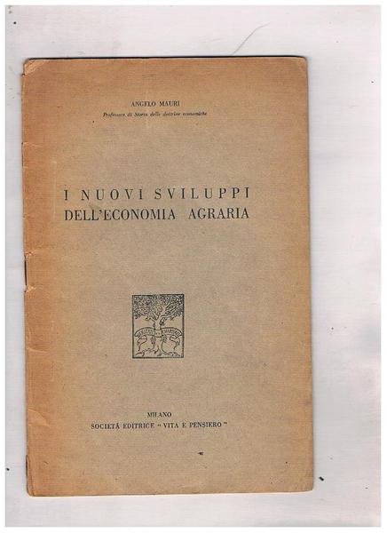 I nuovi sviluppi dell'economia agraria. Estratto. | Libri antichi e moderni | Mauri Angelo.