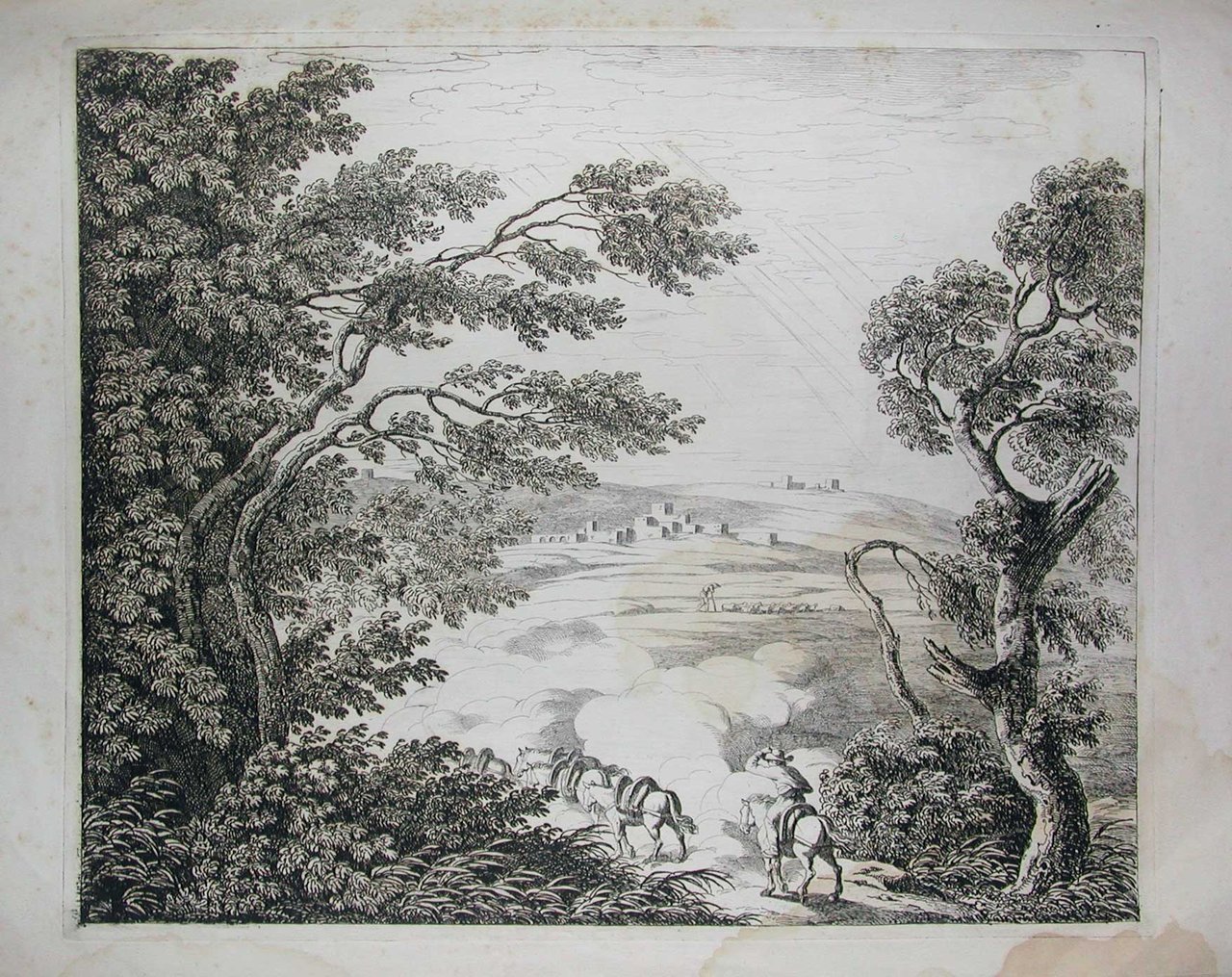 I paesi di Gaspare Pussino, dipinti a tempera nel Palazzo Massimi, con altri dipinti a oglio delle Gallerie Falconieri, e Verospi, ed il Lot di Annibale Caracci, con il Sansone di Domenichino volte a fresco della Villa Cavalieri già disegnati per suo Studio dal Pittore Bartolomeo Pinelli Romano ora del medesimo incisi all'acque forte. Al Sig. Angiolo Bonelli [.]. | Libri antichi e moderni | Pinelli Bartolomeo.