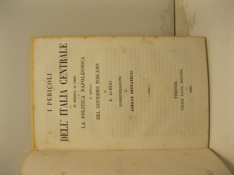I pericoli dell'Italia centrale in risposta al libro La politica napoleonica e quella del governo toscano di E. Alberi. Considerazioni | Libri antichi e moderni | Gennarelli Achille
