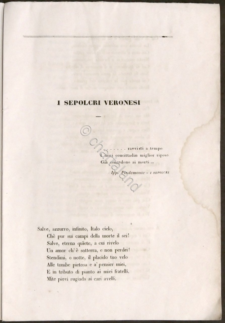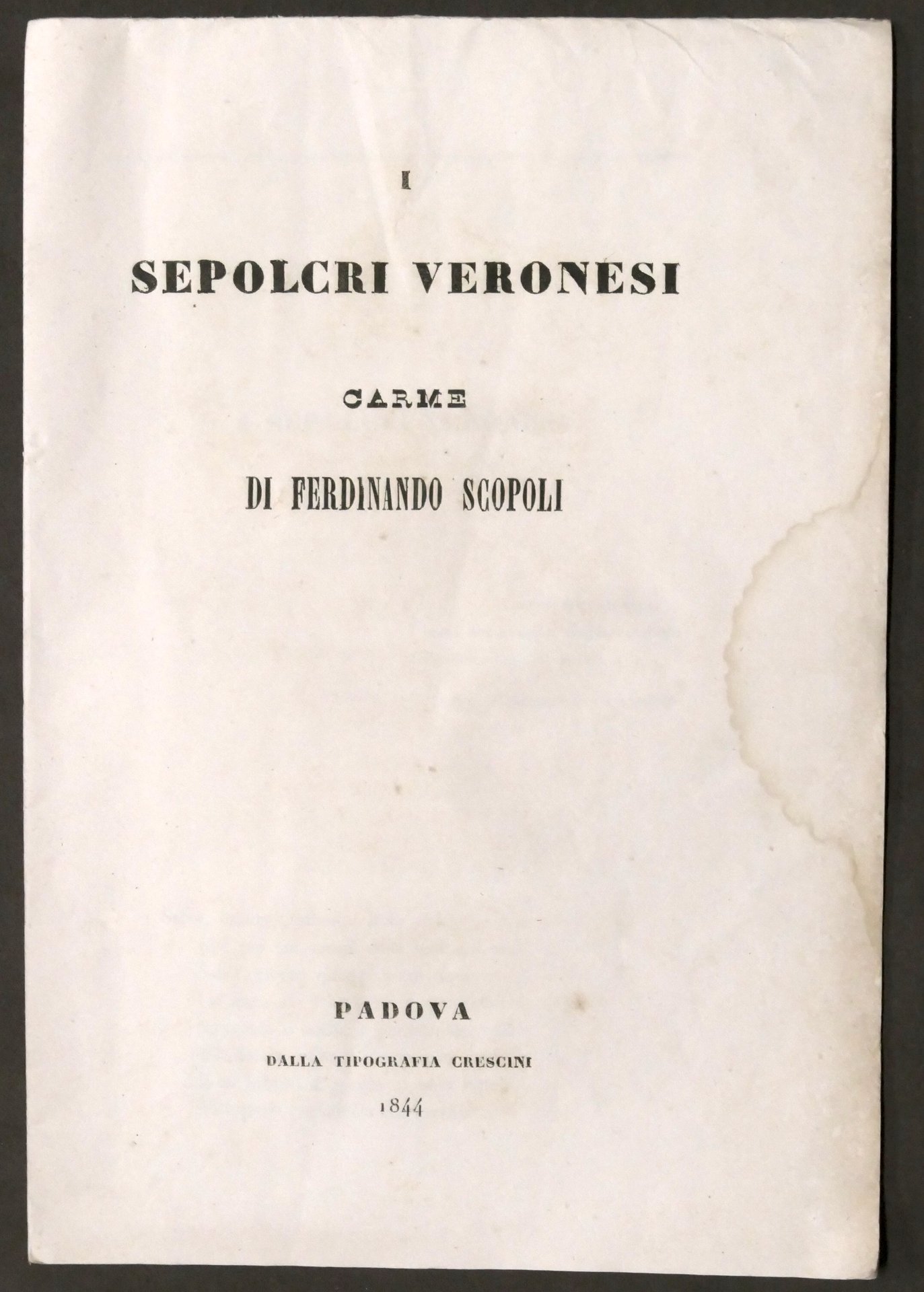 I Sepolcri Veronesi - Carme di Ferdinando Scopoli - ed. 1844 | Libri antichi e moderni |