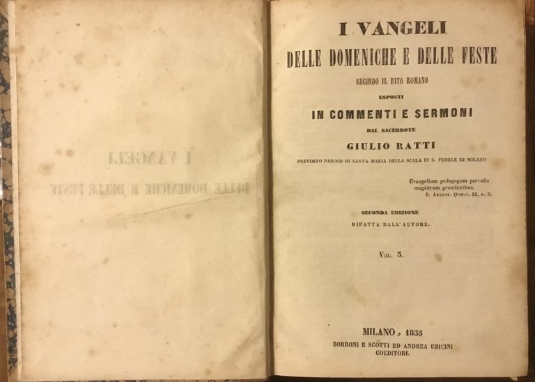 I vangeli delle domeniche e delle feste secondo il rito Romano. Vol. 3. | Libri antichi e moderni | Giulio Ratti