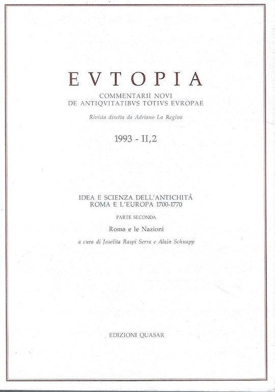 Idea e scienza dell'antichità. Roma e l'Europa 1700-1770. Parte seconda: Roma e le Nazioni. (Rivista "Eutopia" - 1993-II,2) | Libri antichi e moderni | Raspi Serra, J. - Schnapp, A., ,Raspi Serra, J. - Schnapp, A.