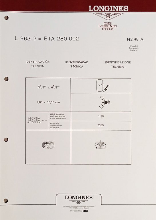 Identificazione Tecnica Longines N. 48 A - L 963.2 = ETA 280.002 - ed. 1985