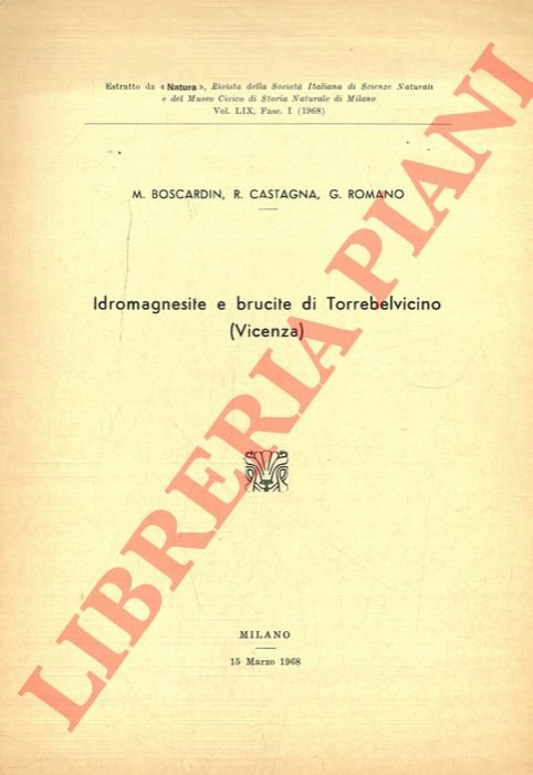 Idromagnesite e brucite di Torrebelvicino (Vicenza) . | Libri antichi e moderni | Boscardin M. - Castagna R. - Romano G.