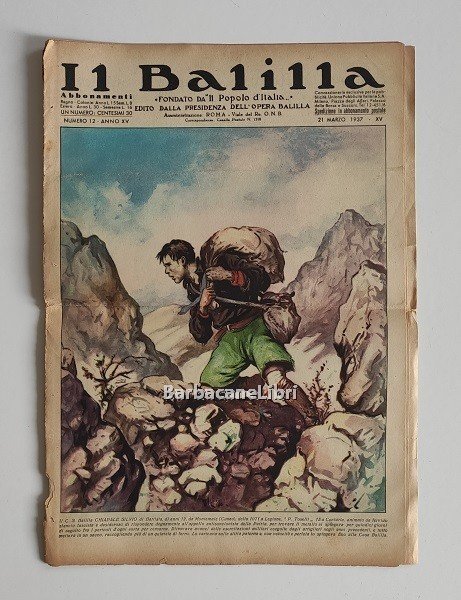 Il Balilla. Numero 12, Anno XV. 21 marzo 1937. Fondato da Il Popolo d'Italia. Edito dalla Presidenza dell'Opera Balilla | Libri antichi e moderni |