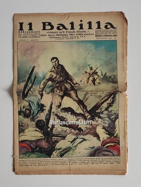 Il Balilla. Numero 23, Anno XV. 6 giugno 1937. Fondato da Il Popolo d'Italia. Edito dalla Presidenza dell'Opera Balilla | Libri antichi e moderni |