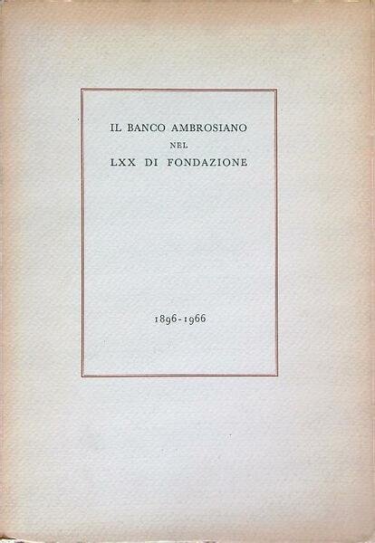 Il Banco Ambrosiano nel LXX di Fondazione | Libri antichi e moderni | aa.vv.