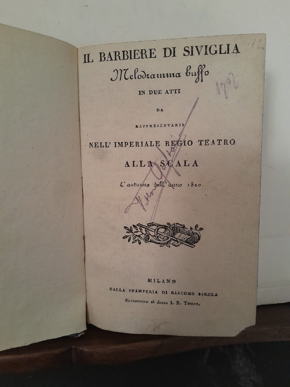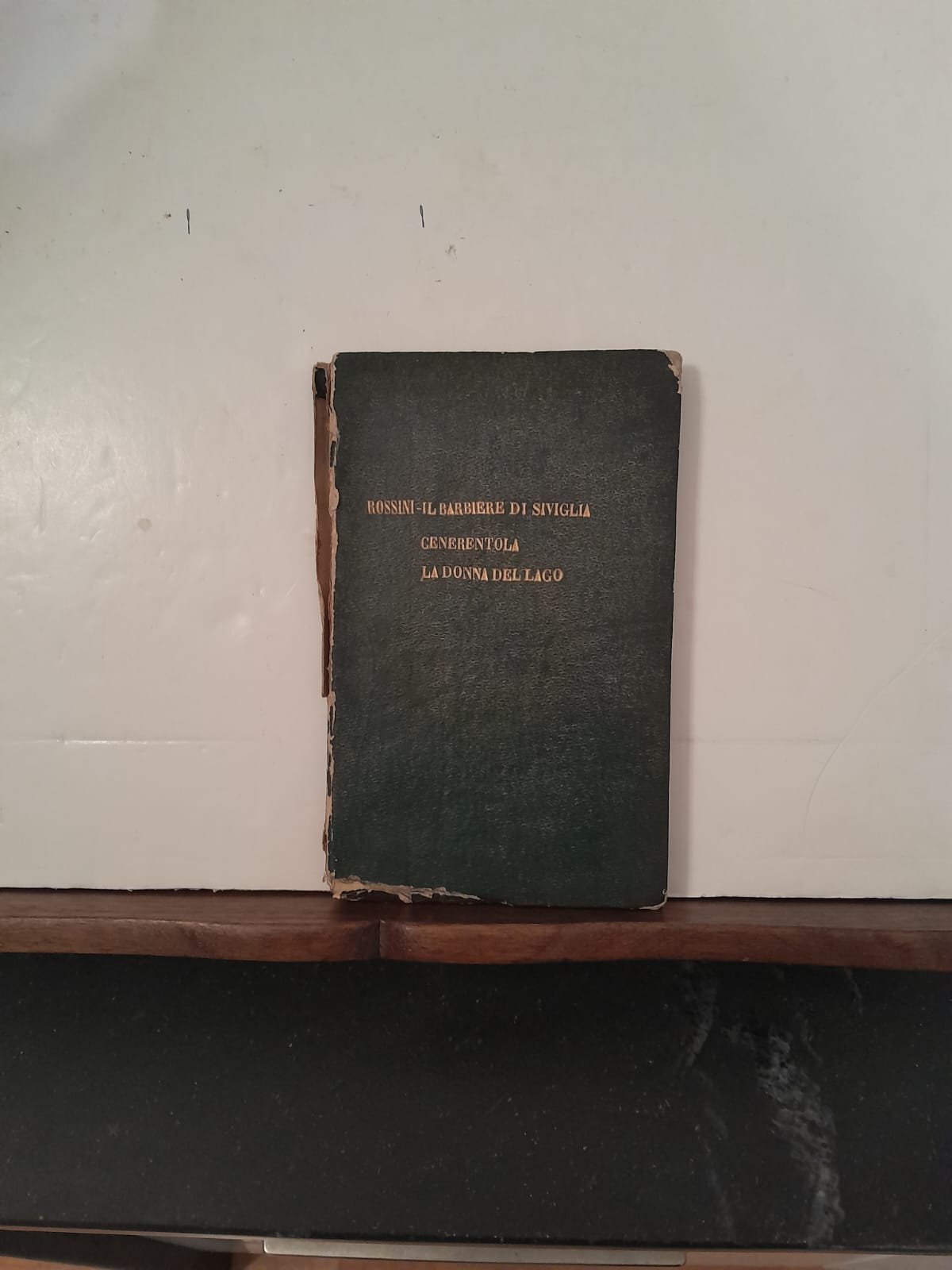 Volume in 8° legatura ottocentesca con dorso rotto e titoli in oro sul piatto. Pagg: 55(Il Barbiere di Siviglia)+57 (Cenerentola)+36 (La Madonna del Lago).Pagine sane,COMPLETO.