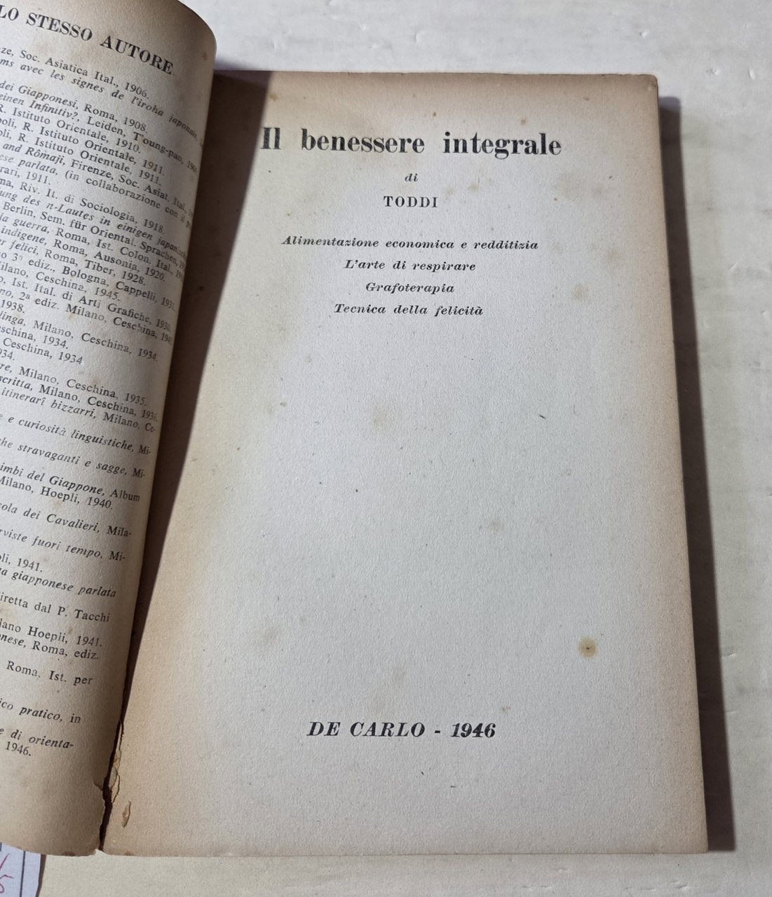 Il benessere integrale- Alimentazione economica e redditizia-L'arte di respirare- Grafoterapia- Tecnica della felicita' | Libri antichi e moderni | Toddi