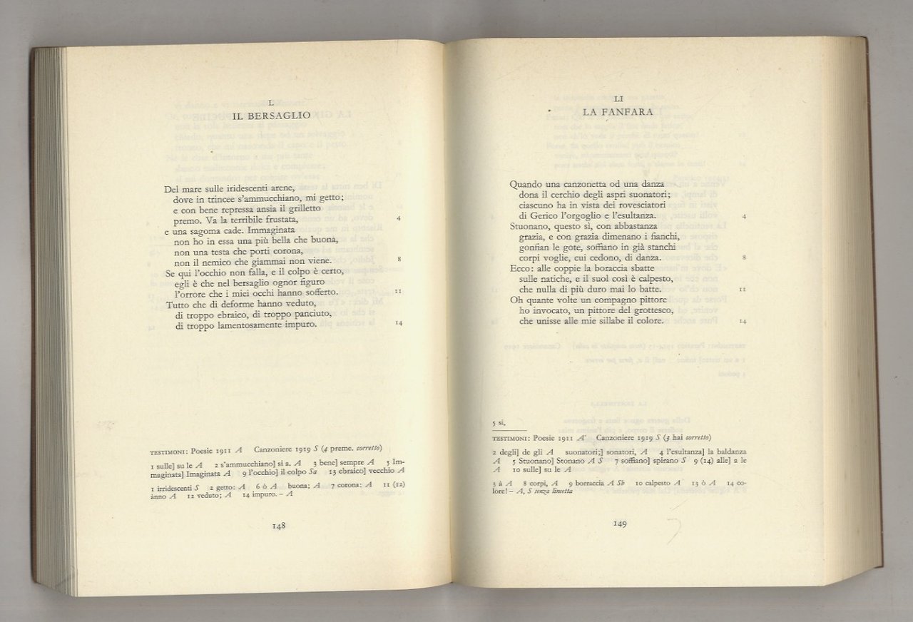 Milano, Fondazione Arnoldo e Alberto Mondadori, Aprile 1981, in-8, br. editoriale con alette, pp. CXXVII, (1), 571, (3). N. 5 nella collana "Testi" (testi e strumenti di filologia italiana) diretta da Bozzetti, De Robertis, Isella, Mengaldo, Raimondi. Bel volume stampato su carta vergellata, in ottime condizioni.