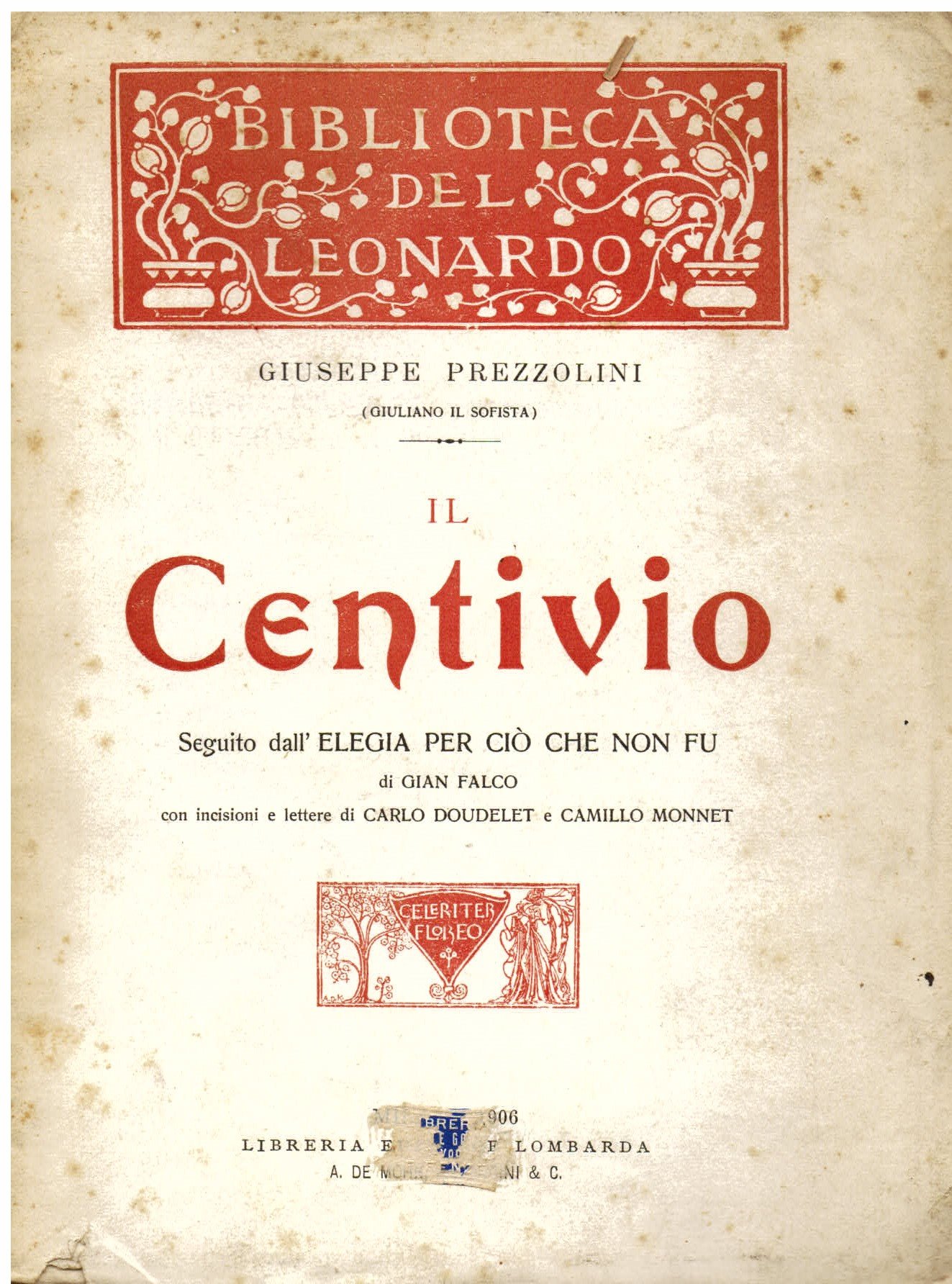 Il Centivio. Seguito dall' Elegia per ciò che non fu di Gian Falco con incisioni e lettere di Carlo Doudelet e Camillo Monnet