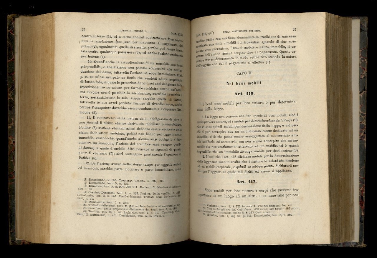 Il codice civile italiano nei singoli articoli col confronto, produzione o riferimento delle leggi romane e delle disposizioni dei codici Francese, Sardo, Napoletano, Parmense, Estense ed Austriaco colle opinioni di Voet, [.], Richeri, Domat, Pothier, [.] Toullier, [.] Troplong, [.] Demolombe, [.] Pacifici-Mazzoni, Saredo, Borsari ecc. [.].