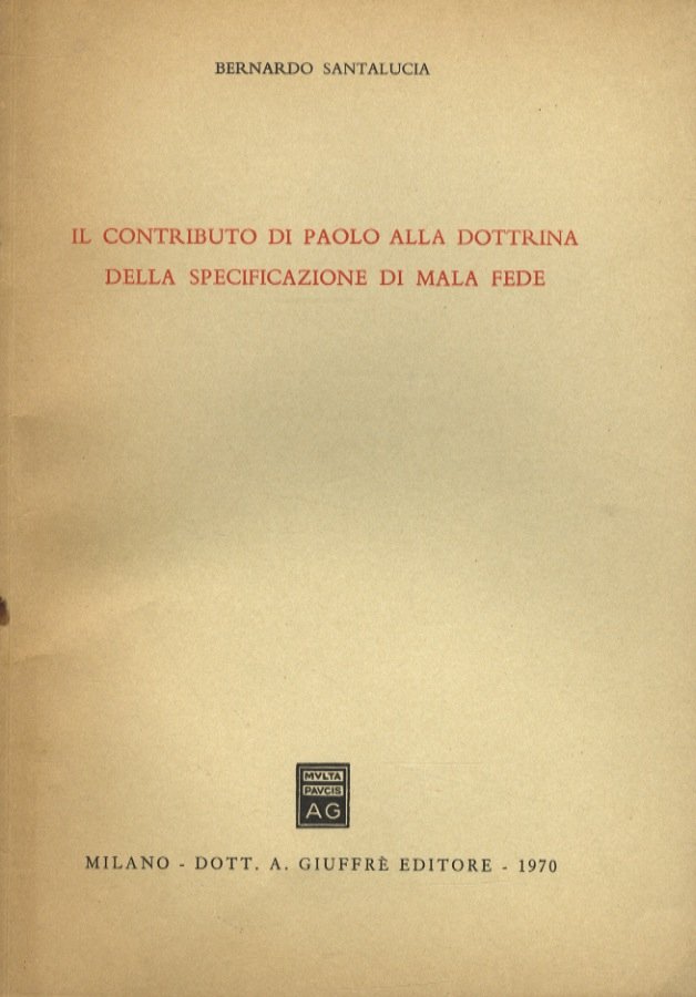 Il contributo di Paolo alla dottrina della specificazione di mala fede. | Libri antichi e moderni | Santalucia Bernardo.