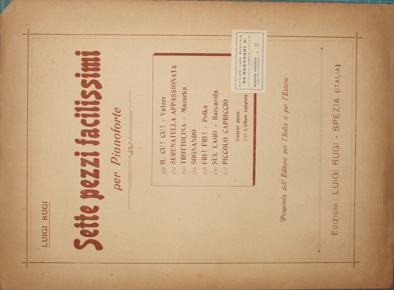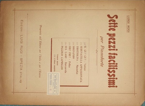 Valzer - Collana Collezione Universale per pianoforte. N. 545 - in 4° - pp.3 - Brossura editoriale illustrata - Strappetti e angolo mancante alla brossura - Contiene la brossura originale (Sette pezzi facilissimi per Pianoforte. N. 231.Edizioni Luigi Rugi, Spezia)
