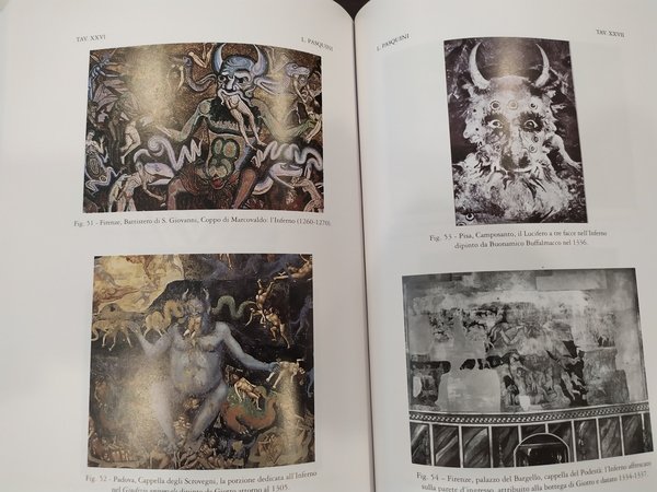 Bross., cm 24x17, pp XI-626, 32 tavv. f.t. con 64 ill. a colori e b/n. Indice: TULLIO GREGORY, Il diavolo nell’Occidente medievale - ADELE MONACI CASTAGNO, Nascita e sviluppo del ‘Diavolo e i suoi angeli’ (Mt 25,41): interpretazioni dei testi biblici ed extrabiblici nei primi secoli del cristianesimo - GIUSEPPE CREMASCOLI, Corpus diaboli. Sulla demonologia di Gregorio Magno - PASQUALE PORRO, Il diavolo nella teologia scolastica: il caso di Tommaso d’Aquino - AGOSTINO PARAVICINI BAGLIANI, Il papato e il demonio. Per una rilettura di alcune lettere pontificie del Due e Trecento - GRAZIELLA FEDERICI VESCOVINI, Il demonio nella magia naturale dei secoli XIII e XIV: due modelli esemplari, Guglielmo d’Alvernia e Nicola Oresme - PIERO BELLINI, Della « origine del male » nella riflessione soteriologica della cristianità latina tardo-antica - FRANCESCO SANTI, Lucifero e Dante. La poetica della morta poesì - PAOLO GOLINELLI, Diabolus in figura: trasformazioni demoniache e incontri col santo nell’agiografia medievale - ALESSANDRA BARTOLOMEI ROMAGNOLI, Il diavolo nella letteratura mistica del Duecento - MARTINE OSTORERO, Diable, démons et sorciers au sabbat: de nouveaux rapports entre les mauvais esprits et les êtres humains? - ALVARO CACCIOTTI, La battaglia del “manigoldo di Dio”. Tratti della tentazione diabolica in alcuni autori francescani, secoli XIII-XV - LORENZO PAOLINI, Il « principe di questo mondo » nella demonologia catara - GIAN LUCA POTESTÀ, Il drago, la bestia, l’Anticristo. Il conflitto apocalittico tra Federico II e il Papato - BEATRICE PASCIUTA, Il diavolo e il diritto: il Processus Satane (XIV sec.) - RICCARDO PARMEGGIANI, Nomi e luoghi del diavolo - LAURA PASQUINI, Il diavolo nell’iconografia medievale - CLAUDIO BUCCOLINI, Il diavolo nel Malleus maleficarum - LUIGI CANETTI, La danza dei posseduti. Mappe concettuali e strategie di ricerca - MARINA FALLA CASTELFRANCHI, Il diavolo a Bisanzio. Aspetti iconografico-iconologici e liturgici. - ISBN: 9788868090074