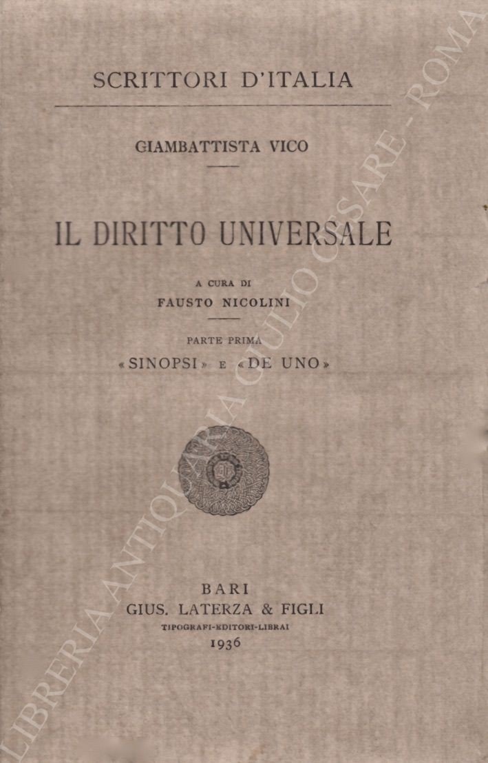 Il diritto universale. A cura di Fausto Nicolini. Vol. I - "Sinopsi" e "De uno". Vol. II - "De constantia iurisprudentis". Vol. III - "Notae". "Dissertationes". Nota bibliografica e indici | Libri antichi e moderni | Vico Giambattista (1668-1744)