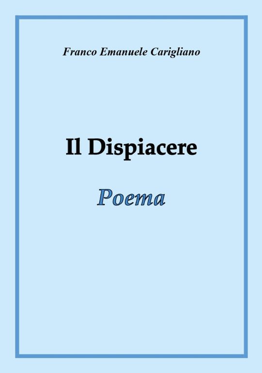 "Il dispiacere" è un poema suddiviso in quattro capitoli. Tema principale dell'opera è la nascita, ossia: il momento topico da cui scaturisce la vita di ogni essere vivente. Il componimento lirico mette, perciò, a confronto le figure di due nuovi nati, in questo caso rappresentati da una rondine e da un bambino. La narrazione prescinde la natura del loro sesso. Affidandomi alla mia immaginazione, ho provato, quindi, ad interpretare la sfera emotiva dei due infanti, seguendone la relativa crescita, sullo sfondo del periodico passare delle stagioni solari. Ogni pagina si propone di attrare l'attenzione del lettore mediante l'impiego di metafore e immagini pittoresche. L'opera comprende anche la stesura calligrafica originale. Al margine di queste premesse, mi piace riportare un aspetto che ho colto in me durante la scrittura poetica, vale a dire: a volte mi sono identificato con lo "stato d'animo" dei suddetti protagonisti del poema.