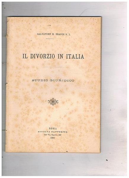 Il divorzio in Italia. Studio giuridico. | Libri antichi e moderni | Brandi Salvatore M.