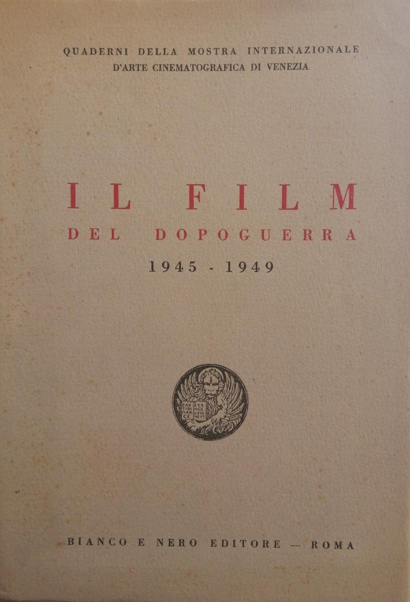 Quaderni della Mostra Internazionale d'Arte Cinematografica di Venezia. in ottavo leg. bross. pp. 264 Buono (Good) Buon es., segni del tempo.