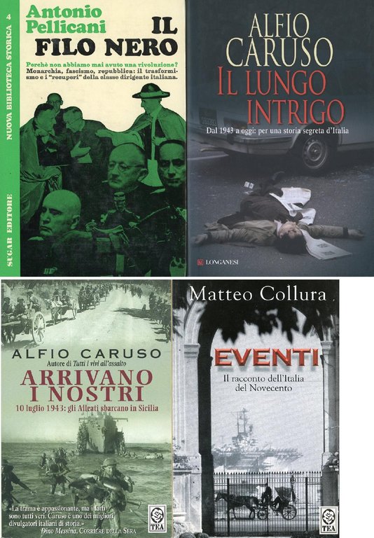 . 8vo. pp. 402. . Ottimo (Fine). . Prima edizione (First Edition). . Si aggiungono altri 3 libri: 1) Alfio Caruso, Il lungo intrigo. Dal 1943 a oggi: per una storia segreta d'Italia. Longanesi, 2007. pp. 356, Rilegato, sovracoperta, Come nuovo; 2) Alfio Caruso, Arrivano i nostri. 10 luglio 1943 gli alleati sbarcano in Italia. TEA, 2004. pp. 350, Brossura, Come nuovo; 3) Matteo Collura, Eventi. Il racconto dell'Italia del Novecento. EA, 2001, pp. 412, Brossura, Come nuovo