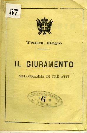 Il Giuramento. Melodramma in tre atti da rappresentarsi al Regio Teatro di Torino nel Carnovale del 1865