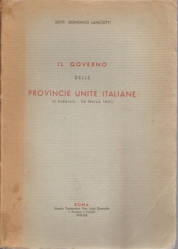 Il governo delle provincie unite italiane ( 3febbraio 26 marzo 1931) | Libri antichi e moderni | Lanciotti D