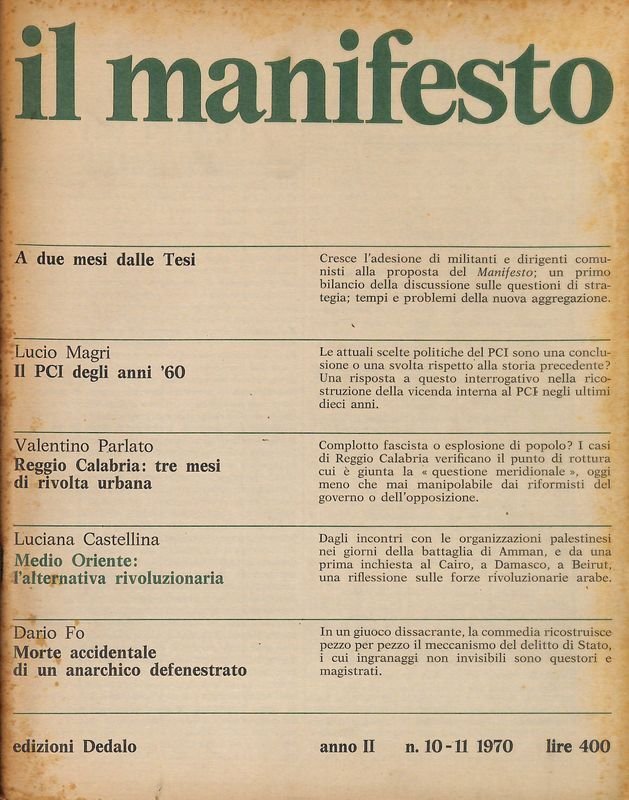 Il manifesto. N. 10-11, 1970 | Libri antichi e moderni | Magri Lucio, Rossanda Rossana, direttori